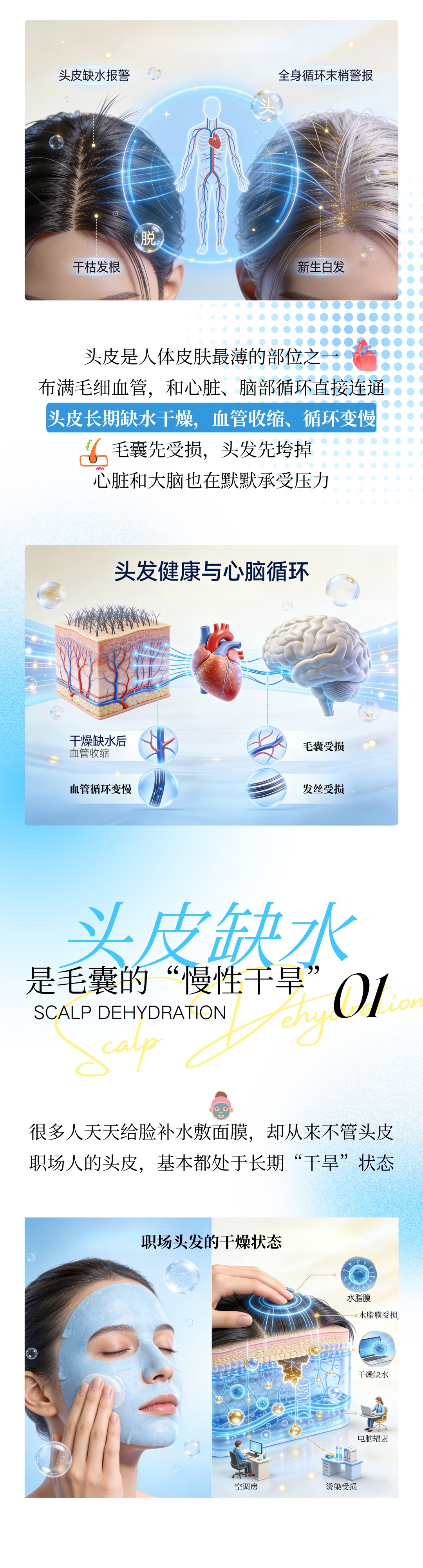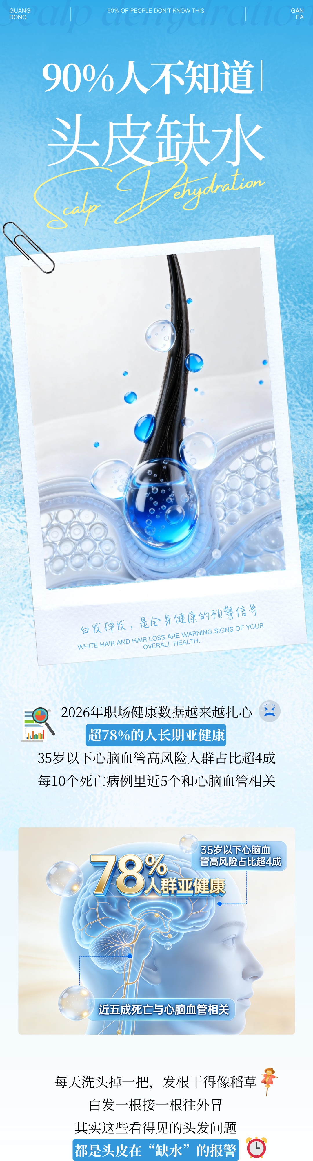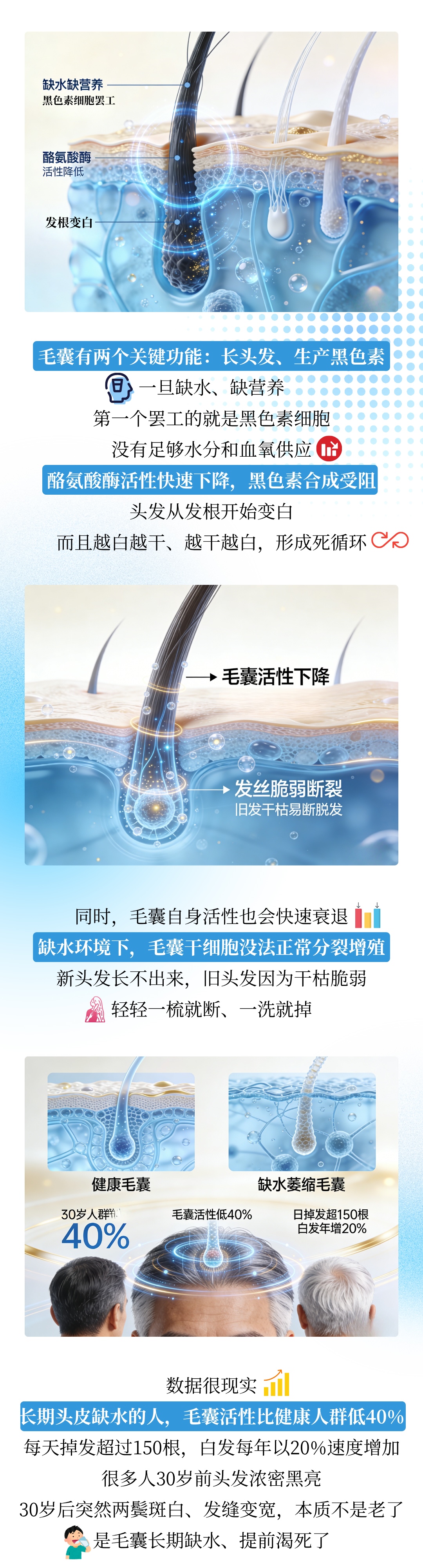 90%人不知道,发色变白、大把掉发,是头皮在喊缺水