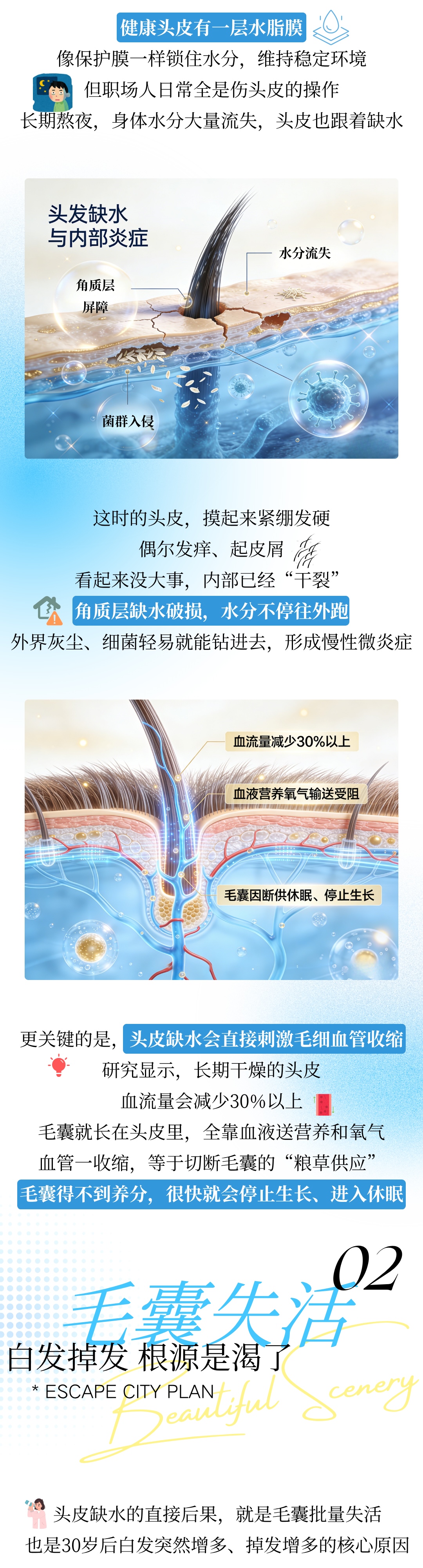 90%人不知道,发色变白、大把掉发,是头皮在喊缺水